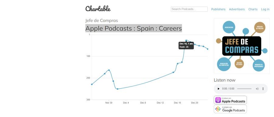 Hemos alcanzado la posición Nº28 en el Ranking Apple Podcasts en España, en la categoría Profesiones según la prestigiosa web Chartable. Queremos darles las gracias por escucharnos, por los correos y por vuestras Reseñas en Apple que nos dan aliento para continuar.